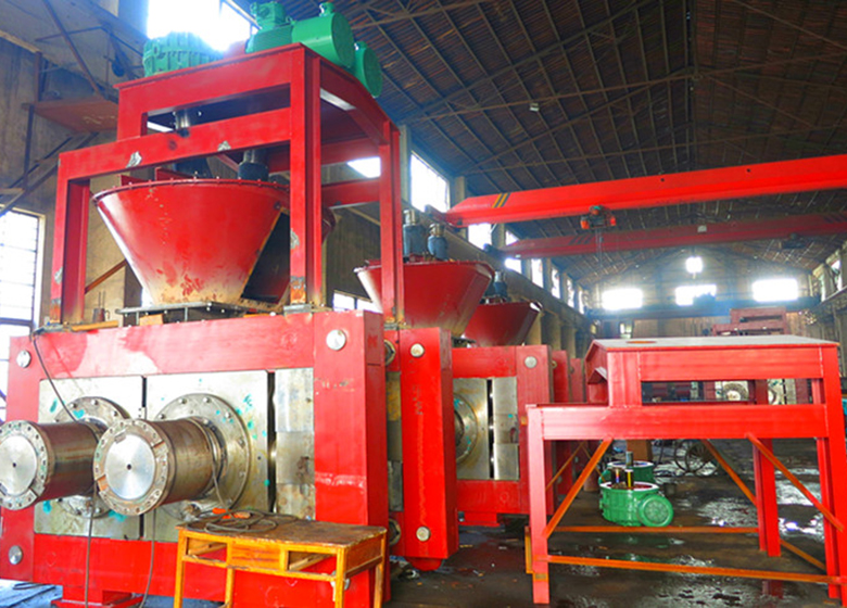 高壓壓球機是一種能將各種干、濕粉料,通過預壓裝置強制進入輥壓區壓制成容重較高的制球設備,適用于工業造氣、鍋爐型煤、冷壓型焦、點火型煤、民用型煤、民用冶金、耐材、醫藥等材料的各種成型。
